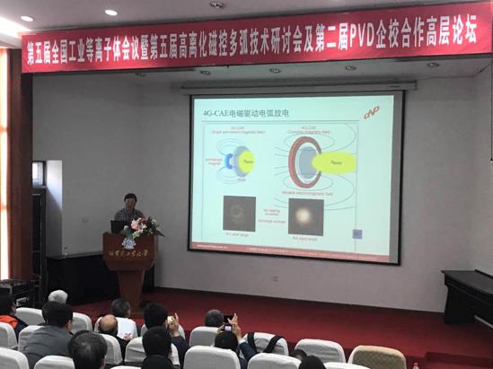 國內各高校研究院所和企業的專家學者和工程師們分別介紹了各自單位的技術研發及最新應用成果。北京丹普表面技術有限公司的董騏先生與會并做了現場演講,介紹了丹普公司開發的關于4G-CAE電磁驅動電弧放電、GisEtch和GIMS、及采用4G-CAE:Ti和MS:C靶源鍍制TiN摻C等相關技術,受到與會嘉賓們的歡迎。